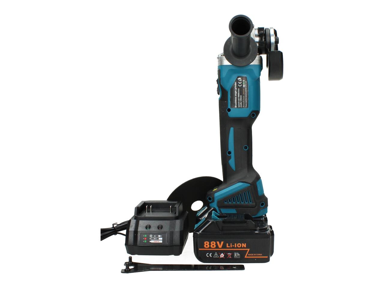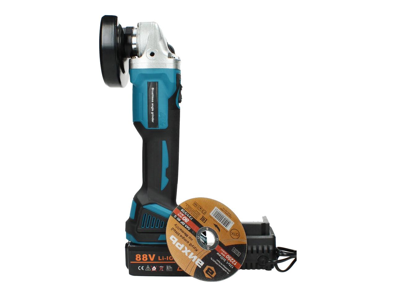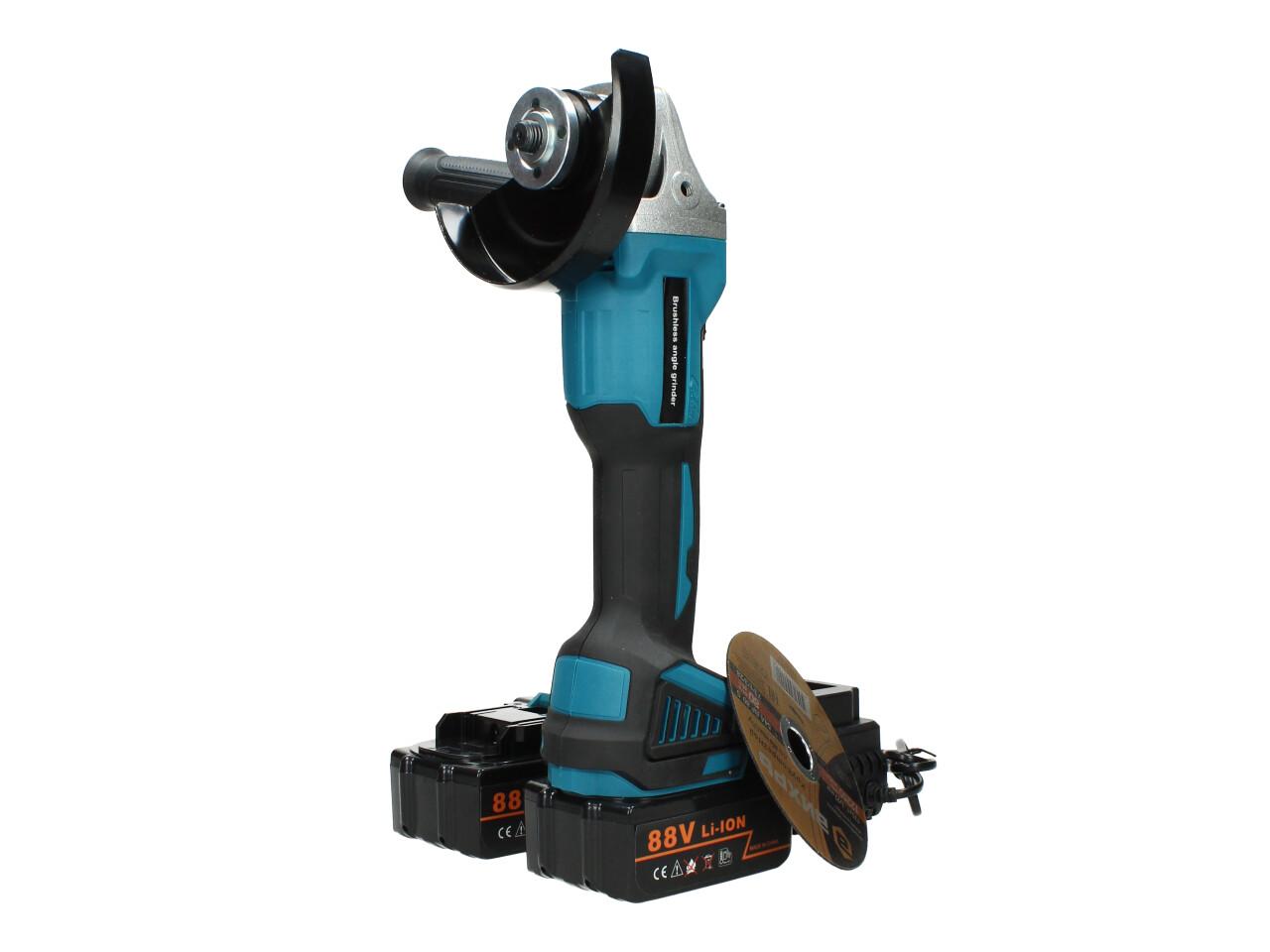 Kvalitní Akumulátorová Ruční Bruska o průměru 125 mm s novým bezuhlíkovým motorem na baterie 88Vf 21V, které jsou kompaktibilní se značkou Makita