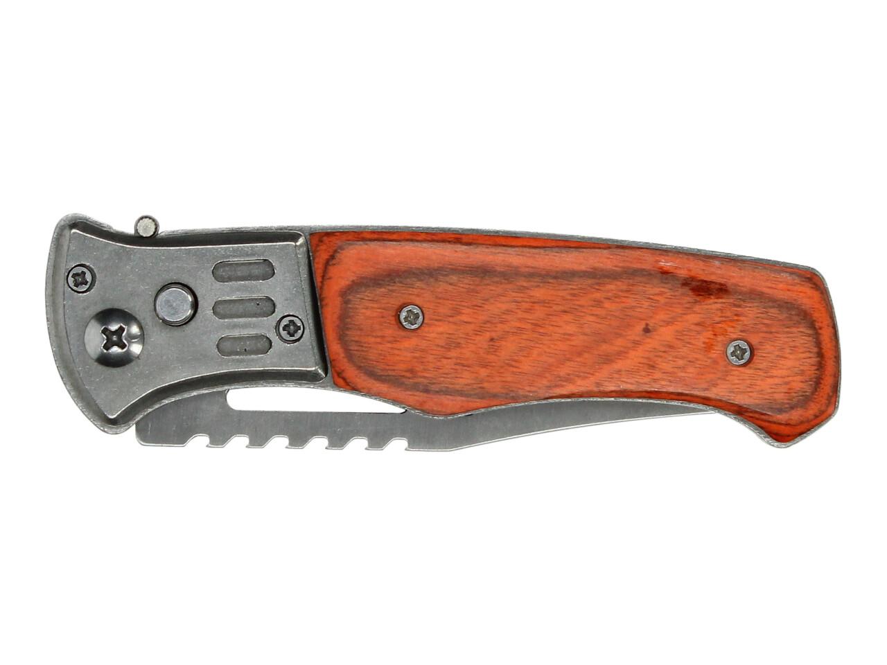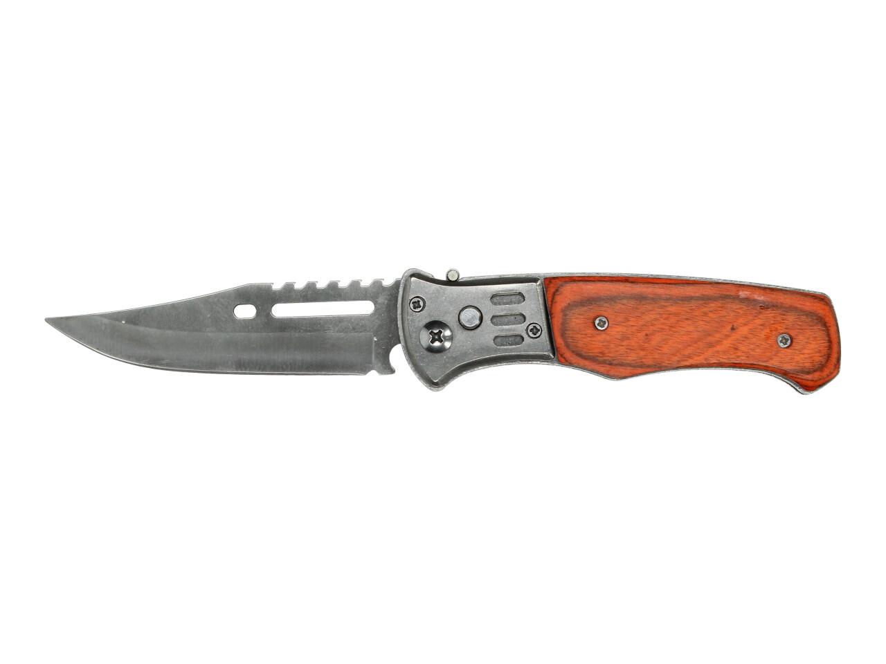Špičkový vystřelovací nůž s dřevěnou střenkou o délce 21 cm s pouzdrem v rozloženém stavu, pojistkou. Tento kapesní skládací vystřelovací nůž disponuje s velmi silnou vystřelovací pružinou a spouštěcím mechanismem, umístěným na jedné straně nože.