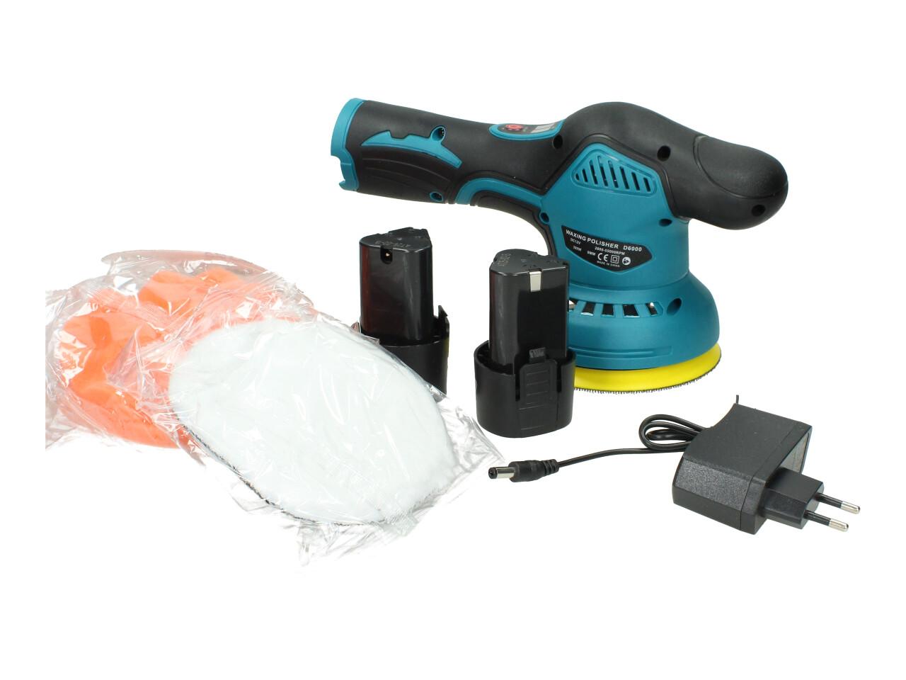 Aku leštička 12V Max včetně 2ks Aku s regulací otáček 8 módů. Excentrická lšětička určena pro leštění automobilů nebo broušení povrchů je dodávána včetně 3 kusů kotoučů, každý jiný, 2 kusu akumulátorů, klíče pro výměnu hlavy a nabíječky.