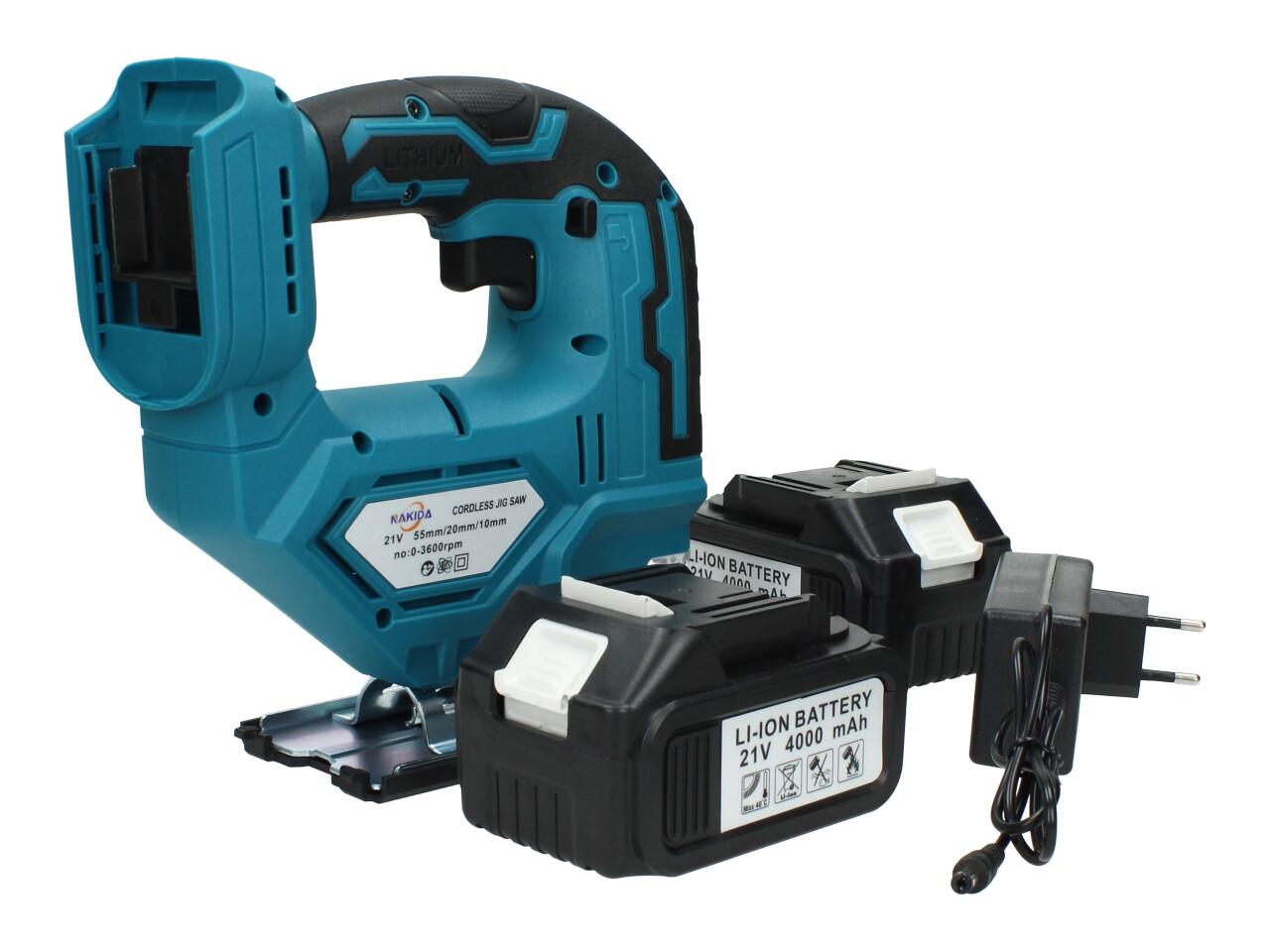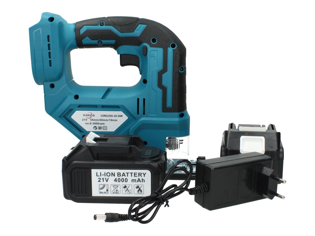 AKU přímočarka, 21 V 4000mAh zdvih 10 mm až 55 mm, 0 - 3600ot/min. včetně 2 ks aku 4000mAh a nabíječky.