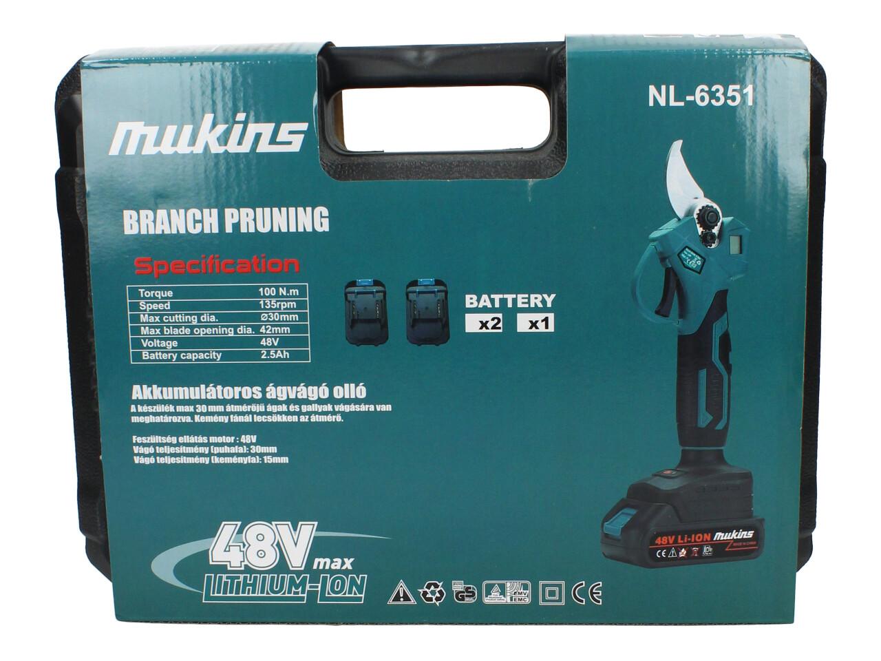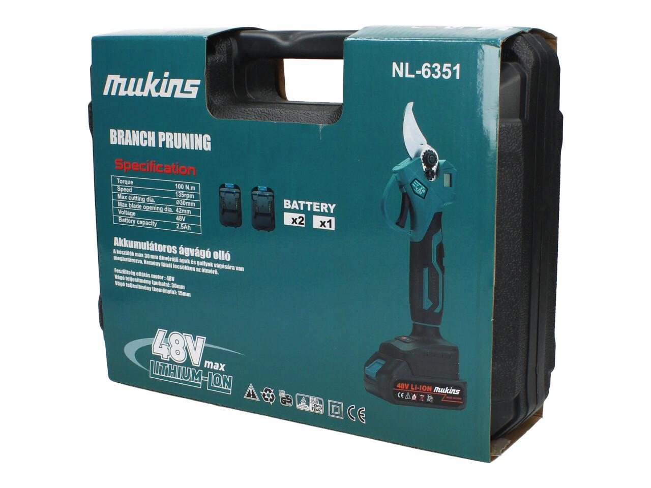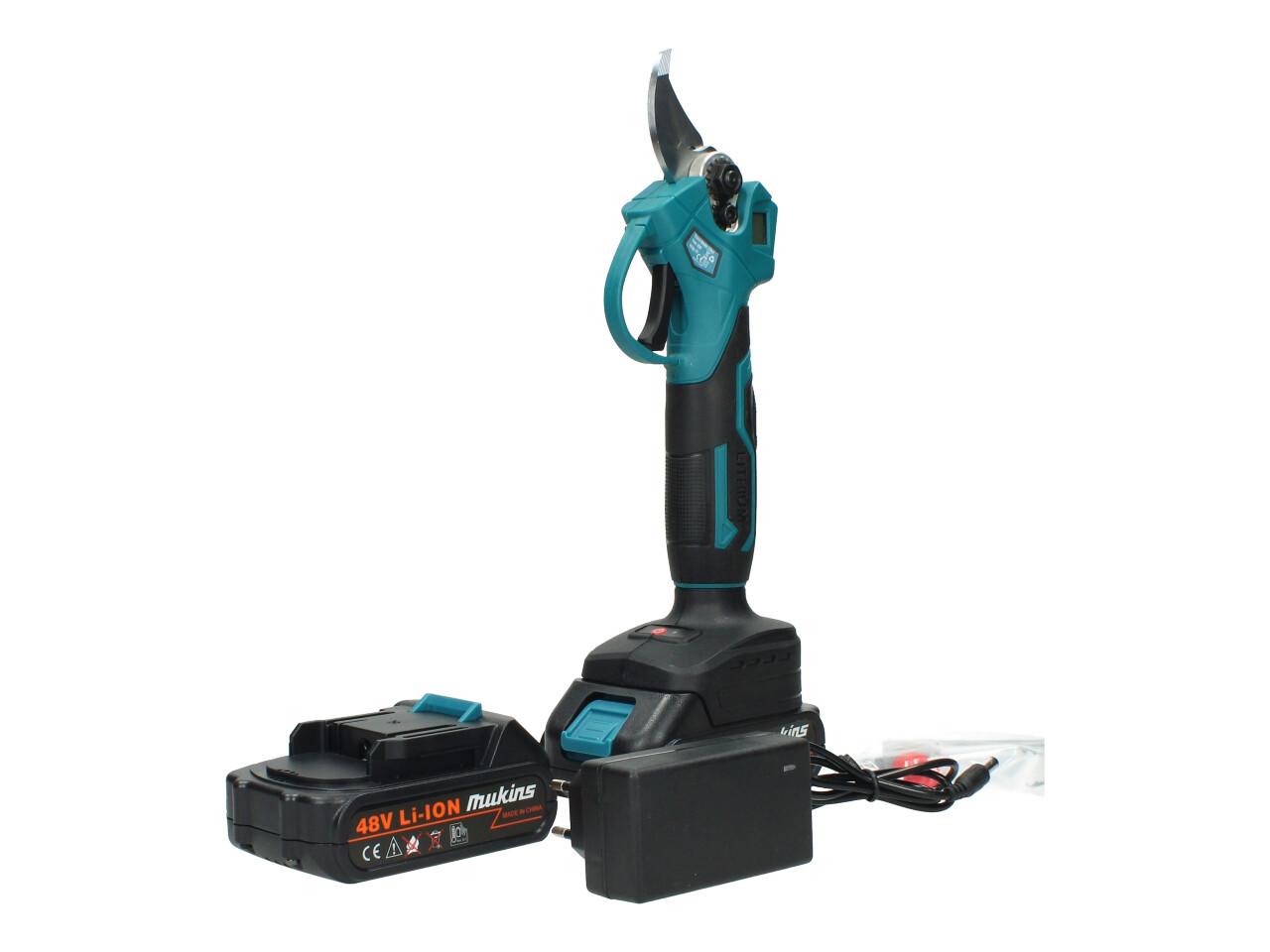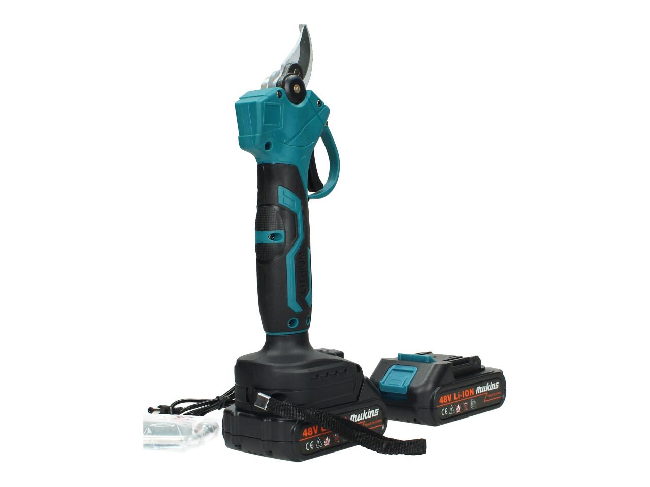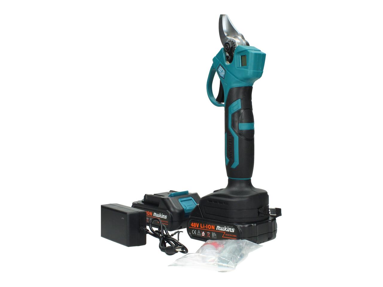 Výkonné aku nůžky Mukins s napětím 48V jsou ideálním pomocníkem pro údržbu zahrady. Díky ostré čepeli a síle až 100 Nm zvládnou bez problémů stříhat i silnější větve až do průměru 30 mm. Rychlost střihu 135 ot./min zaručuje plynulou práci a pohodlné ovládání. Součástí balení jsou hned dvě baterie 2,5 Ah a rychlonabíječka, takže můžete pracovat bez zbytečných přestávek.