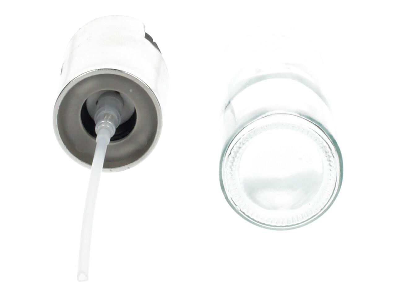 Elegantní skleněný dávkovač na jedlý olej s objemem 100 ml. Umožňuje rovnoměrné dávkování oleje formou jemného spreje, takže ušetříte olej a pokrmy budou zdravější. Chromovaný vršek s velkým tlačítkem se pohodlně ovládá a díky skleněné nádobě se snadno čistí.