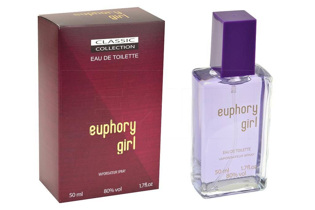 Provokativní, erotická a velice sexy toaletní voda Euphory Girl s lehce dráždivým a exotickým nádechem je přesně ta vůně kterou ženy chtějí! S touto vůní se dokonale sžijete a žádný muž vám nebude moci odolat. Sexy a velmi provokativně působící vůně s exotickým nádechem a dráždivým aromatem. Vůně je pro ženy, které vědí co chtějí.