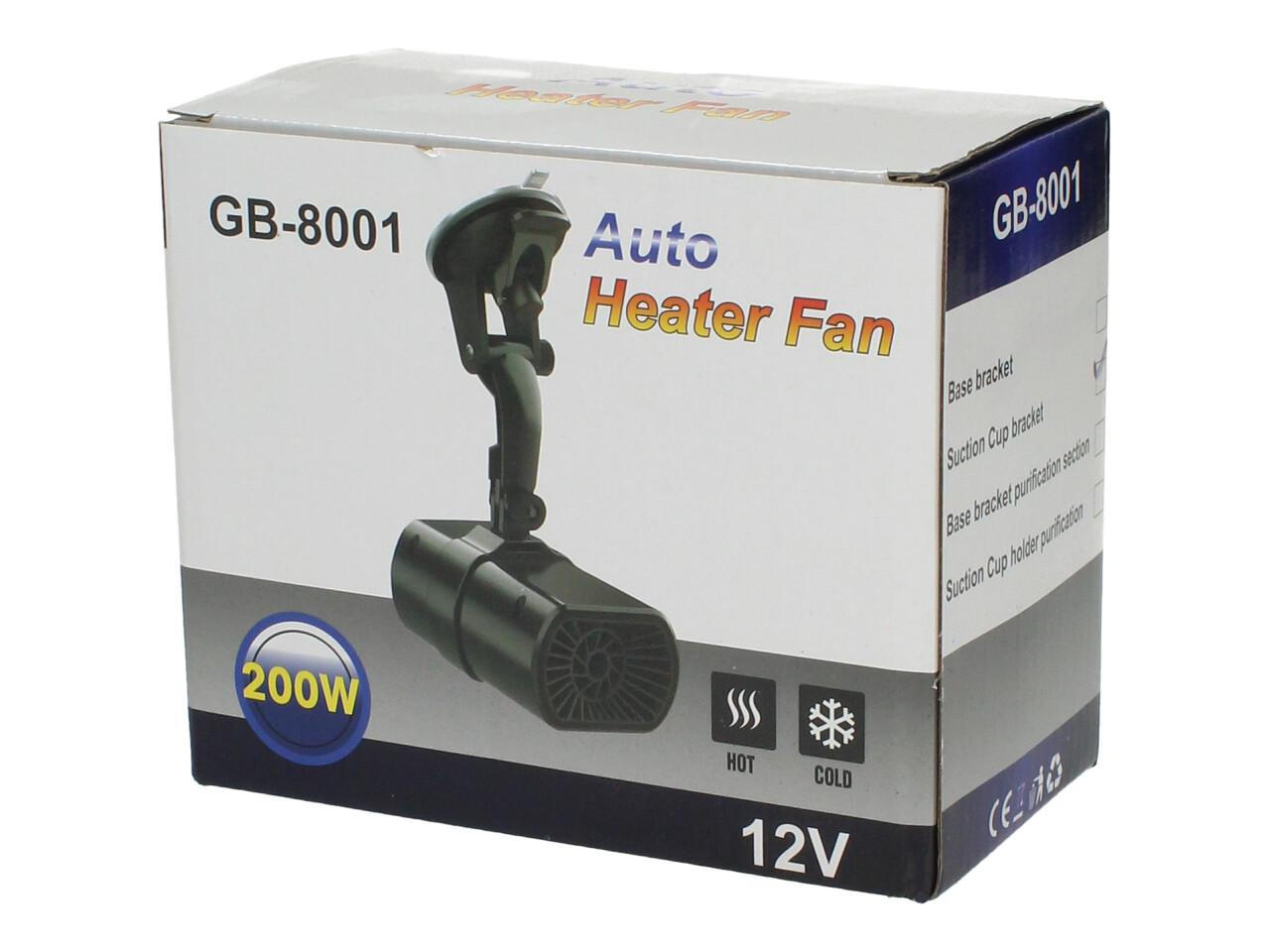 Kompaktní 12V topení do auta GB-8001 (200W) pro rychlé lokální přihřátí kabiny a pomoc při odmlžování/odmrazování skel. Stačí zapojit do zásuvky autozapalovače, připevnit na palubní desku a nasměrovat proud teplého vzduchu tam, kde je potřeba.