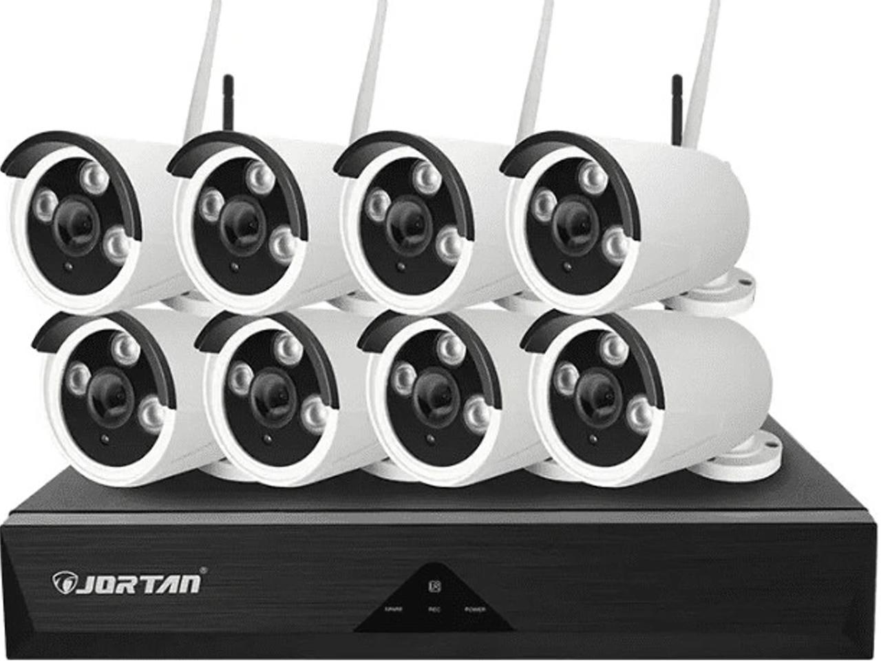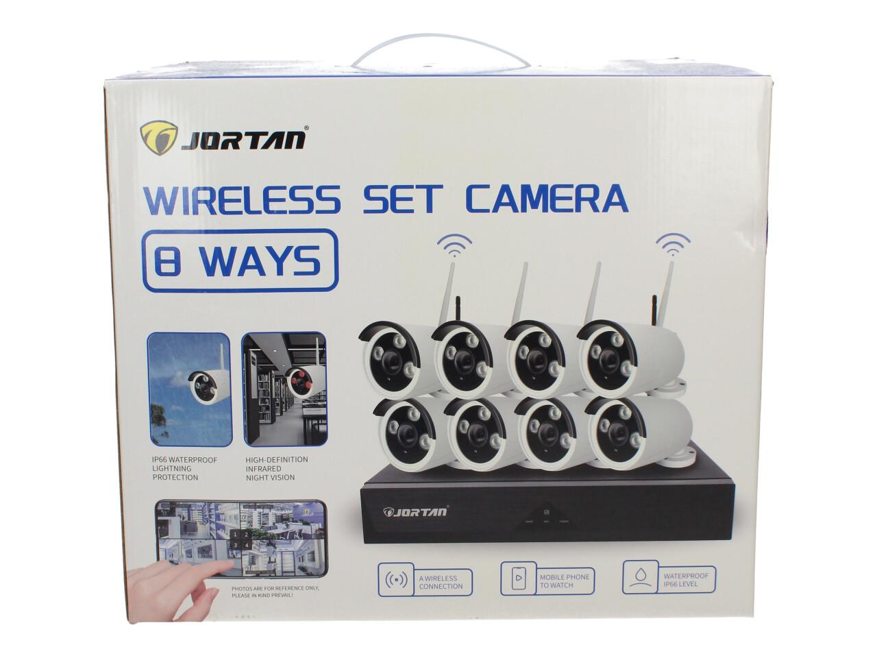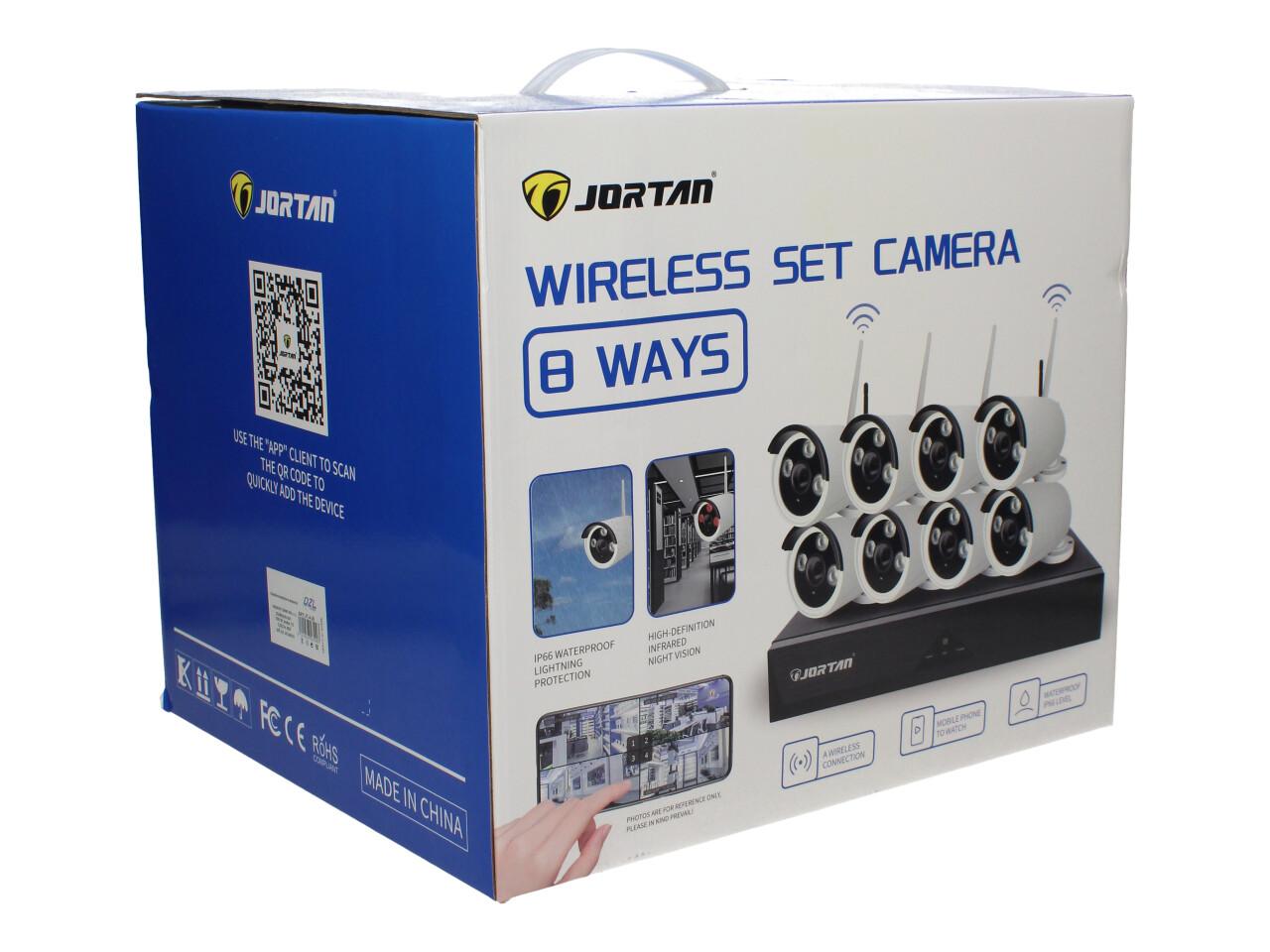 Bezdrátový kamerový set Jortan je kompletní řešení pro zabezpečení domu, firmy, prodejny, chaty nebo skladu – bez nutnosti tahat kabely po objektu. Set obsahuje 8× 1024P HD bezdrátovou IP kameru a 8kanálový Wireless NVR rekordér (8CH / „8 ways“). V rekordéru je zabudovaný WiFi router, který vytváří stabilní bezdrátové propojení kamer se záznamem.