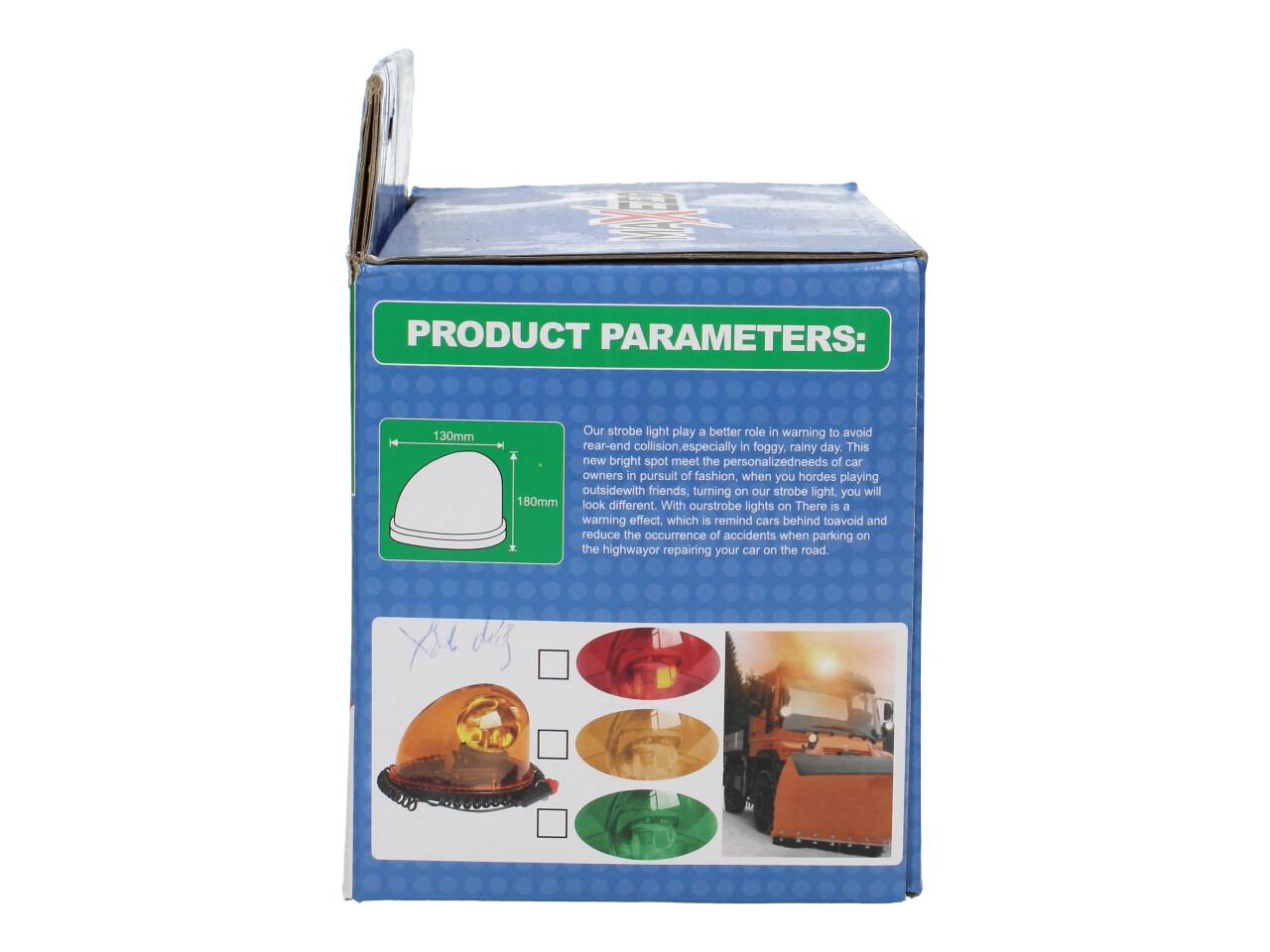 Výstražný oranžový maják Maxeed 83319 je praktické bezpečnostní světlo pro vozidla, stroje nebo pracovní techniku. Napájí se jednoduše přes 12V autozapalovač a díky magnetické základně jej rychle upevníte na střechu nebo jiný kovový povrch. Maják je vodotěsný a zajišťuje dobrou viditelnost ze všech stran díky 360° rotaci.