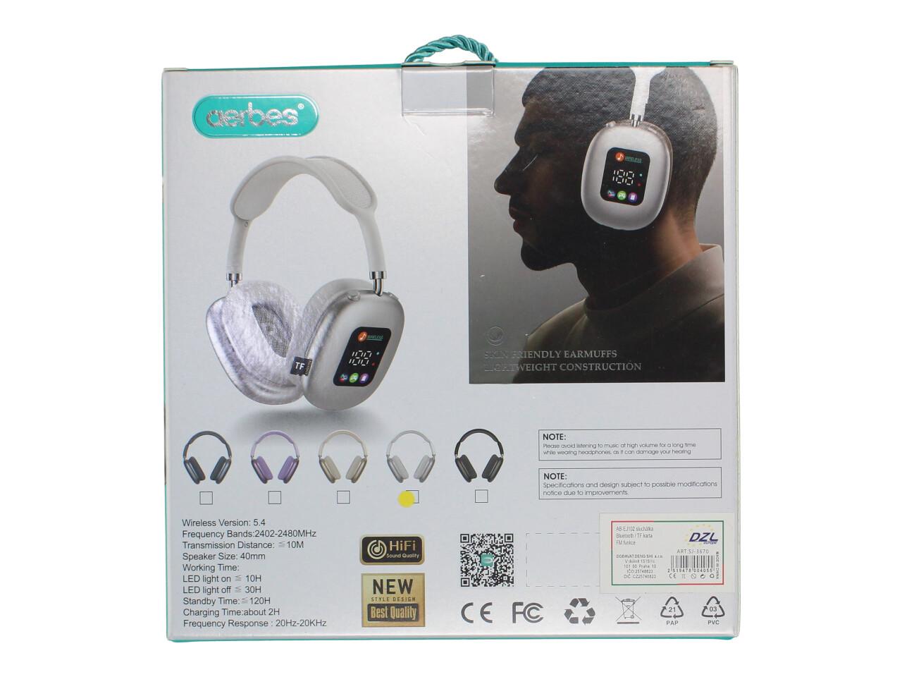 Bezdrátová sluchátka Aerbes AB-EJ102 přináší pohodlný poslech s Hi-Fi stereo zvukem, dlouhou výdrží a praktickými funkcemi včetně vestavěného displeje a ovládacích tlačítek na pouzdře. Díky velkým 40mm měničům nabídnou plnější zvuk a široký frekvenční rozsah. Hodí se na cestování, do práce, k PC i k telefonu.