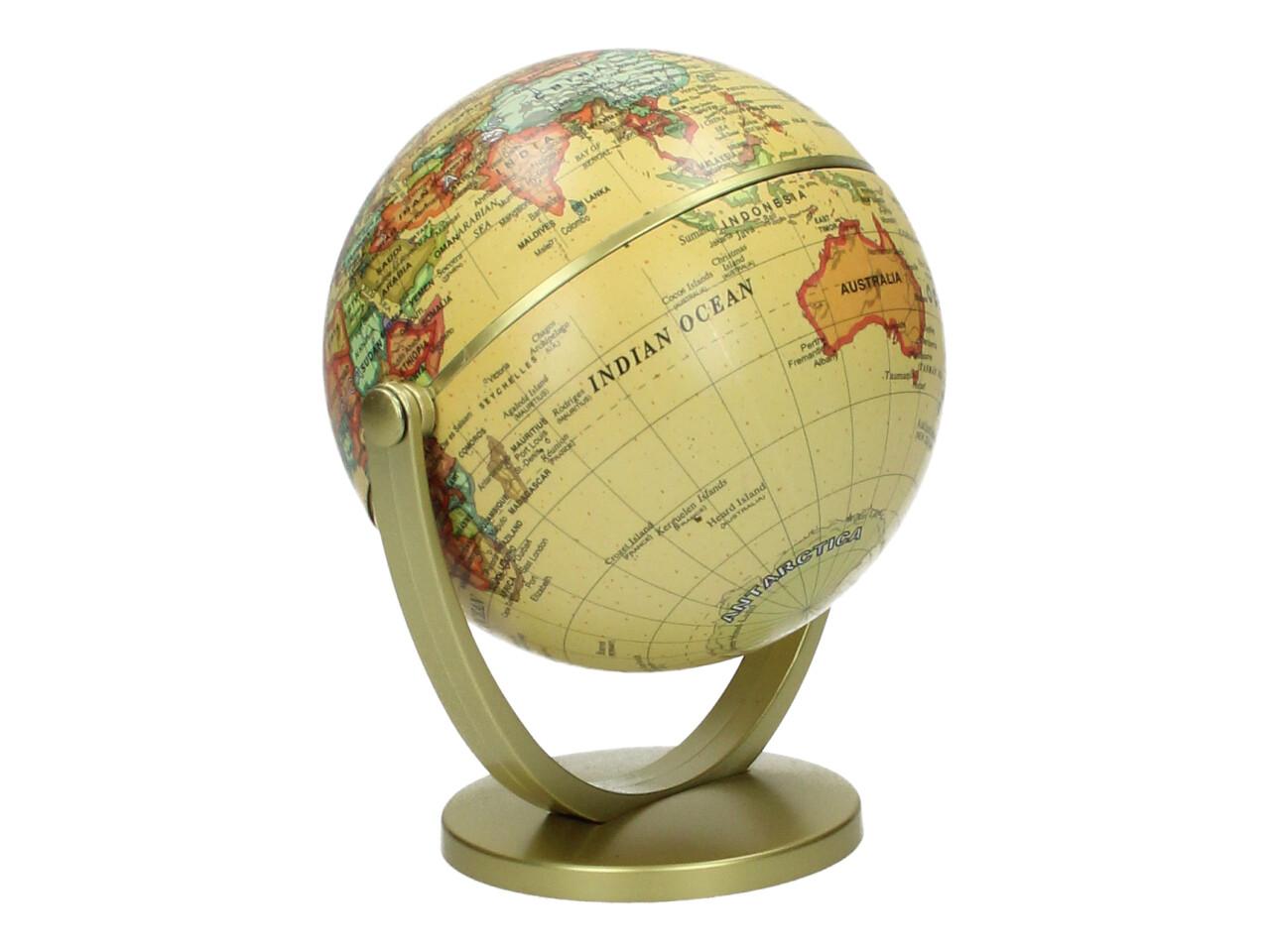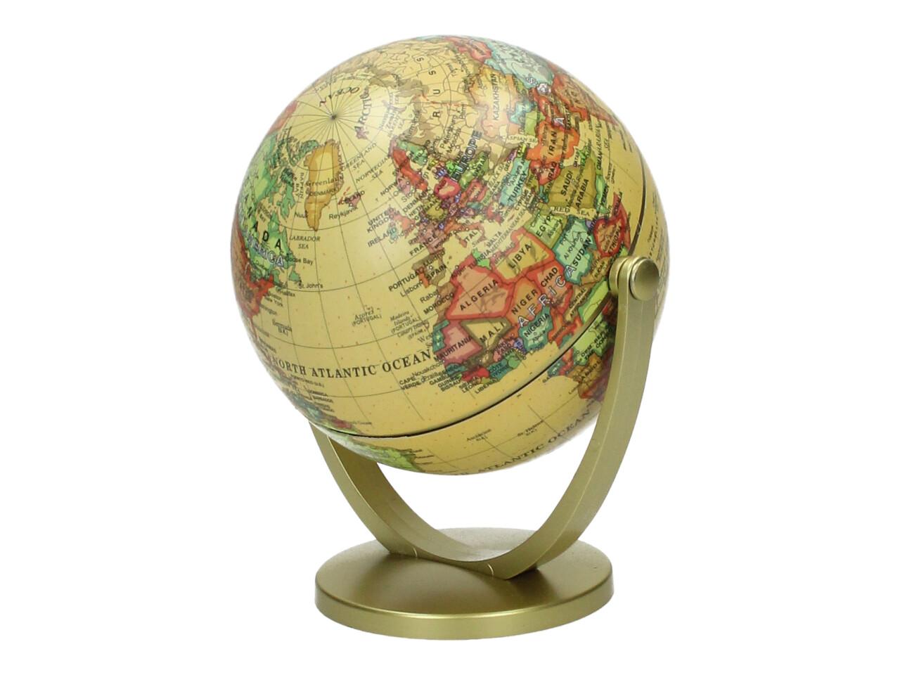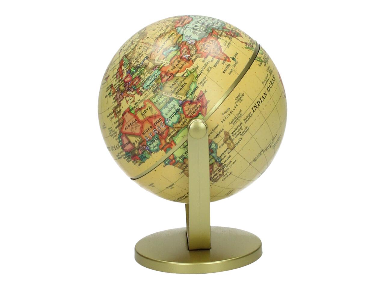 Dekorační glóbus 360° je stylový doplněk do kanceláře, pracovny, dětského pokoje i obývacího prostoru. Díky elegantnímu provedení ve žlutém vintage stylu působí dekorativně a zároveň může sloužit i jako zajímavý vzdělávací prvek. Glóbus je usazen na stabilním stojanu a lze s ním otáčet o 360° pro pohodlné prohlížení jednotlivých částí světa.