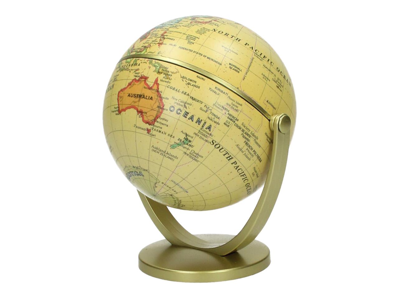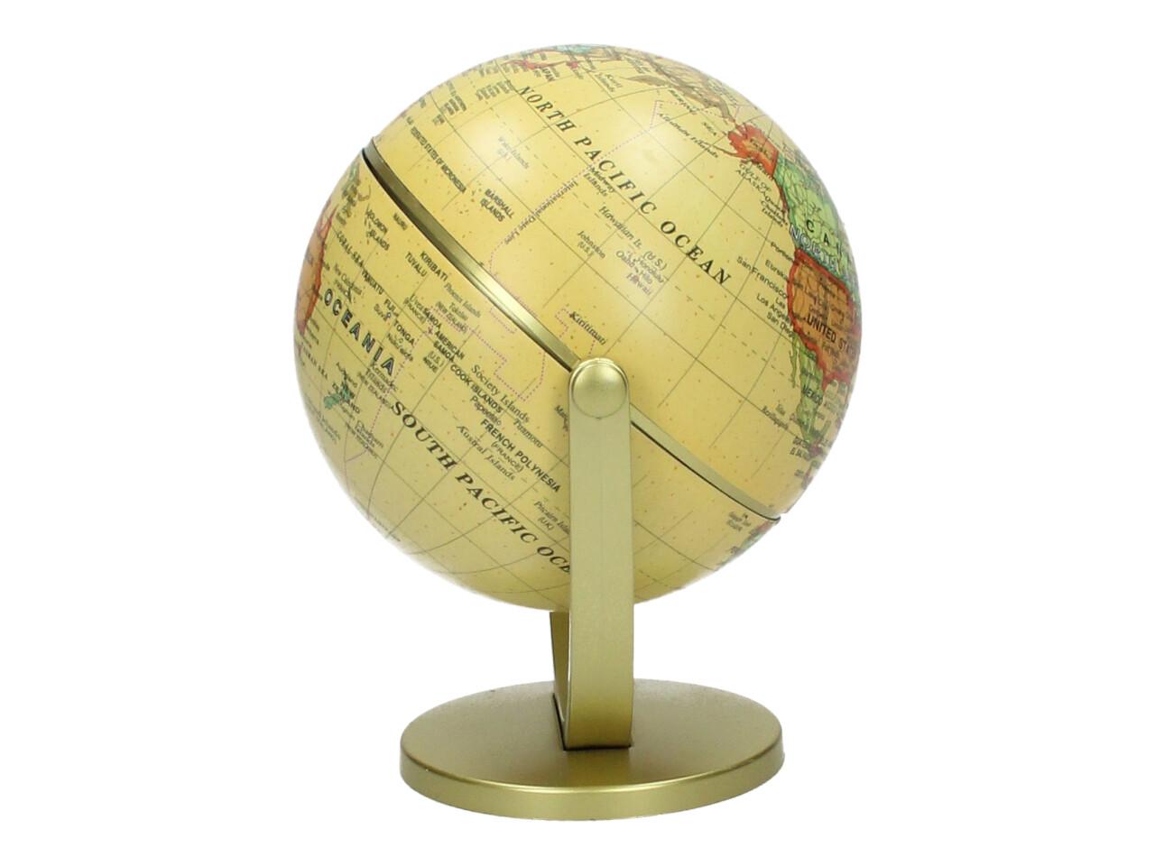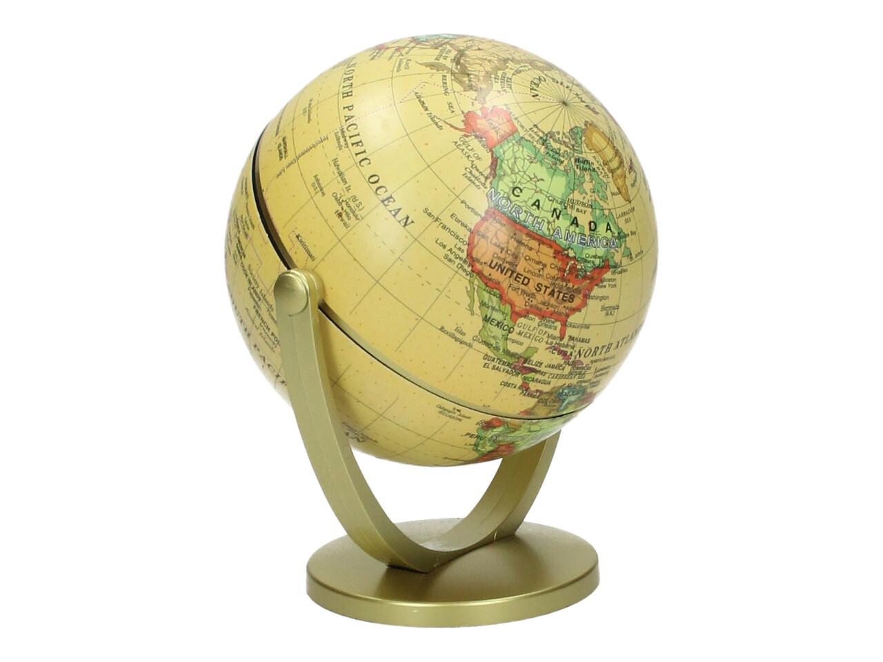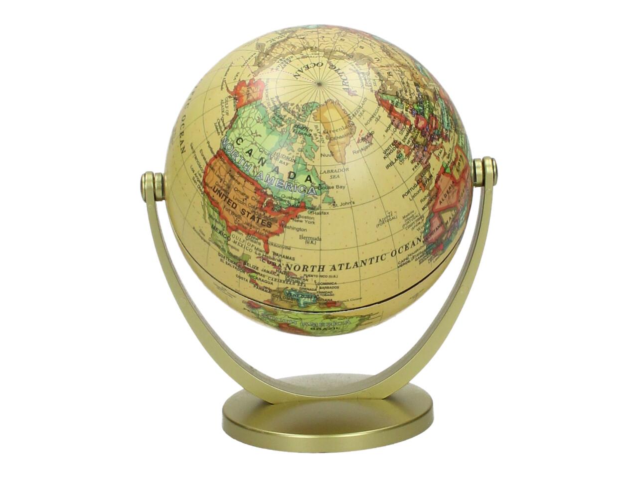 Dekorační glóbus 360° je stylový doplněk do kanceláře, pracovny, dětského pokoje i obývacího prostoru. Díky elegantnímu provedení ve žlutém vintage stylu působí dekorativně a zároveň může sloužit i jako zajímavý vzdělávací prvek. Glóbus je usazen na stabilním stojanu a lze s ním otáčet o 360° pro pohodlné prohlížení jednotlivých částí světa.