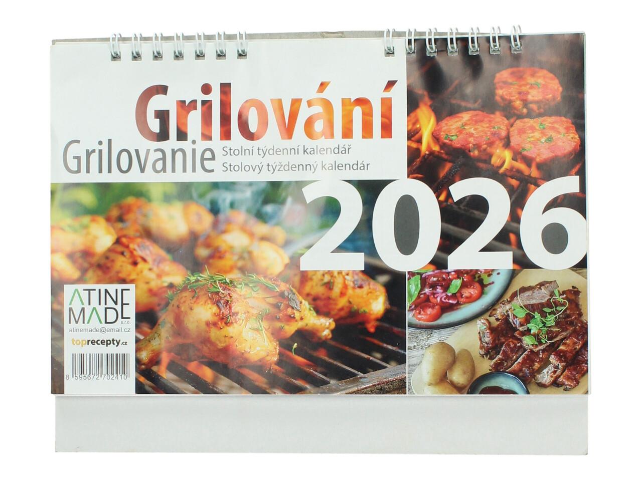 Stolní týdenní kalendář Grilování 2026 je skvělou volbou pro všechny milovníky grilovaných specialit, masa a letní pohody u grilu. Každý týden nabízí přehledné kalendárium s prostorem pro zapisování poznámek, schůzek a důležitých událostí. Nechybí ani tematické fotografie a inspirace ze světa grilování.